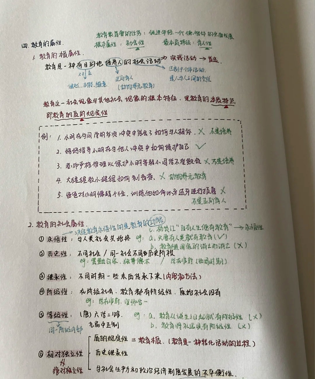 ③之前提到过,教基重要的就是要搞定记忆问题,一方面海阳老师在上课期会教我每个知识点对应的顺口溜,这样我在记忆知识点的时候不用再完完全全记住一大串,只需要了了几个字就能回忆起对应的知识点,轻松破题!另一方面,我在听课期间,还用虹鸟的主、客观题检测宝帮自己进行知识点的查漏补缺,哪个点还不清楚的话及时补上。 阶段二,习题密训: 这个阶段我先是跟着老师分模块进行刷题,教基分为教育学、心理学、小三门,那么我就跟着老师几天做一门的题,复习完一门做这门的综合题,通过题再次了解自己复习的重难点。然后根据自己情况,整理主观题思路,学生观、教师观等,将三门能用到的都整理到一起。模块刷题期间,如果我的题不够的话,就从罗海阳老师的罗题库中挑选我所需要的题目,题库中的题质量也很好,都是紧贴考试大纲,以至于我后来做真题的时候就大致能摸清出题人的出题意图。 刷题的同时,我的错题集也开始整理了。我把错题涉及的知识点都进行整理,同时搞清楚自己错题的原因。当然了,不是说整理完就不看了,在平时也要经常翻看错题集加深印象,防止后面再做错才行。 当然在刷题期间,不得不提到就是老师全程的督导和耐心的讲解,一些难题怪题,在老师的讲解下才能快速搞懂的,也正是如此我的教基才能拿到不错的分数。